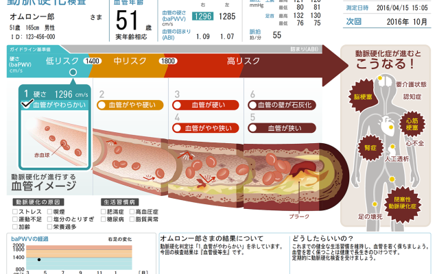 血圧脈波検査(動脈硬化の検査)で血管年齢がわかります!