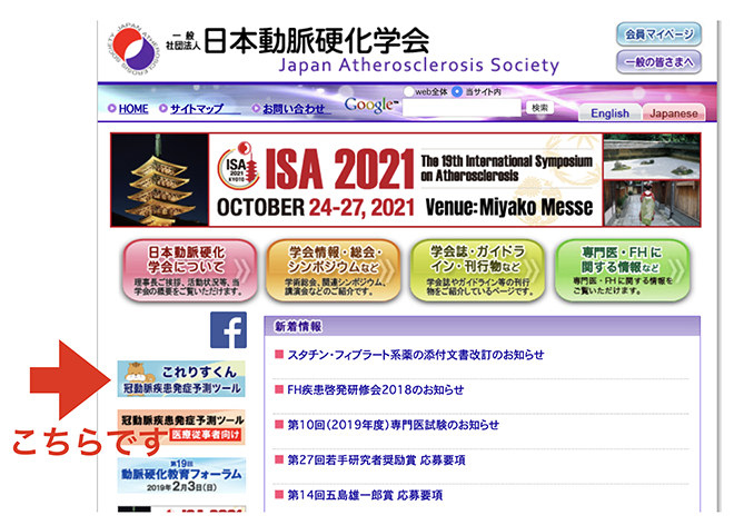 日本動脈硬化学会のホームページ(http://www.j-athero.org/index.html)からも利用することができます。