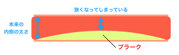 すると、狭くなっている部分の奥側で血液不足(虚血)が起こり、「締め付けられるような胸の痛み」、「胸が重い感じ」といった、いわゆる狭心症の症状を自覚します。