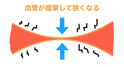 冠攣縮性狭心症は動脈硬化によって血管の内側が狭くなるのではなく、血管が痙攣(けいれん)(=攣縮)してしまうことで狭くなる狭心症です。