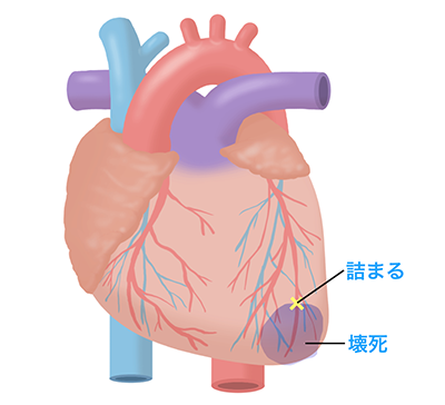 その結果、詰まった血管が栄養している心筋には血液が供給できず、何もしないと数時間で壊死してしまいます。