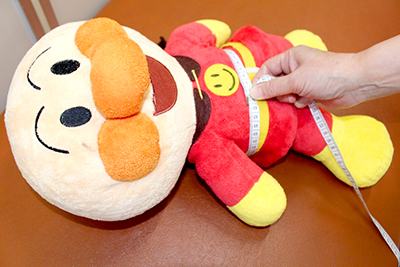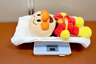 赤ちゃんの体重、身長、胸囲、頭囲を測ります。