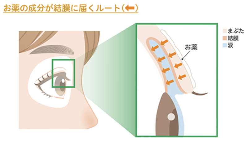 アレジオン眼瞼クリームは1日1回、上下のまぶたに塗布することで、薬の成分がまぶたの皮膚から吸収されます。