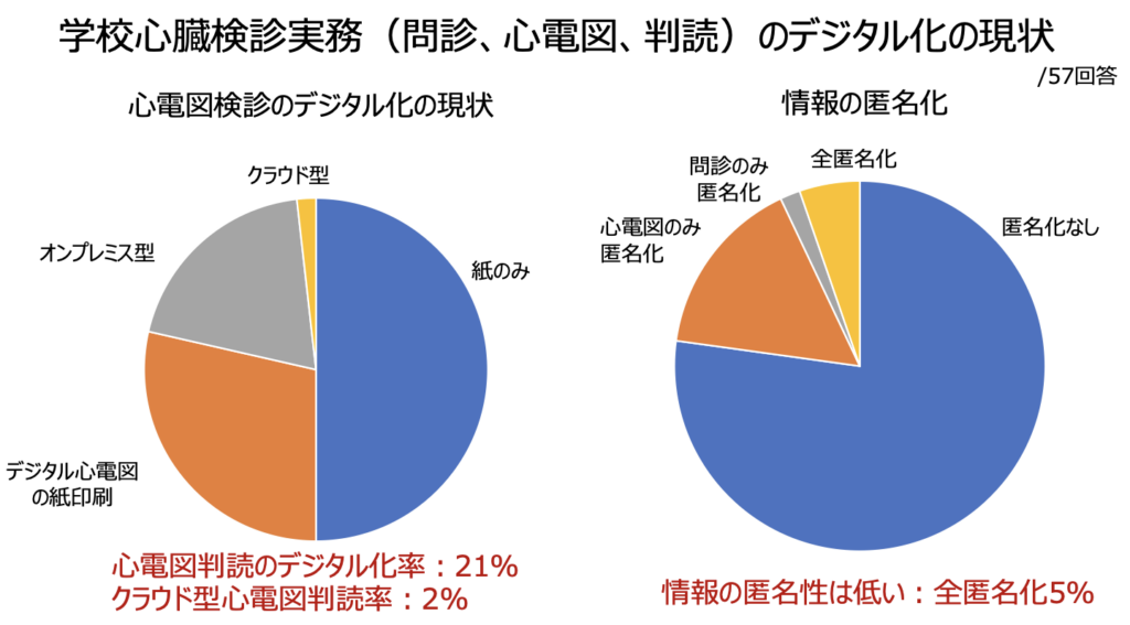 心電図データをデジタル化することでデータ共有の効率化が図れ、例えば検診スタッフが記録した心電図データをクラウドで共有して遠隔地にいる専門医が集約的に判読することも可能になったりするわけですが、システム更新のコストや現状での運用を希望する意見などもありデジタル化はあまり進んでいないのが現状です。