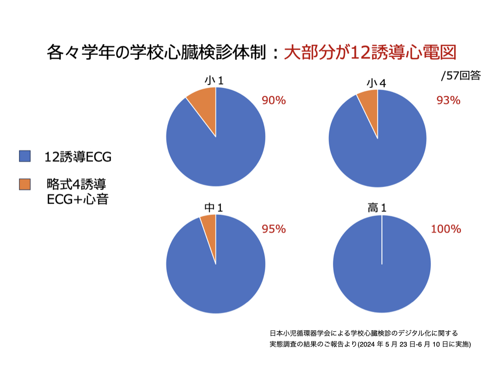 ちなみに日本小児循環器学会による全国調査によれば心音図を用いているのは少数派で大半は12誘導心電図で検診を行っているようです。